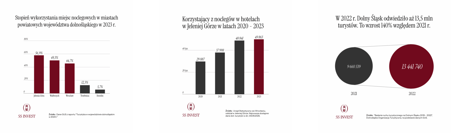 Na szczególną uwagę zasługują regiony górskie. Według badania przygotowanego przez Dolnośląską Organizację Turystyczną w 2022 roku region odwiedziło 13,5 mln turystów – obszary obejmujące między innymi takie kierunki jak Karkonosze, Góry Izerskie oraz rejony Jeleniej Góry, Świeradowa-Zdroju i Szklarskiej Poręby.